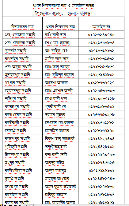 | ১০ | প্রধান শিক্ষকের মোবাইল নং (1-22) | দেখুন |